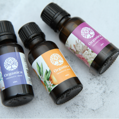 Produk essential oil juga perlu memiliki label. Hal ini sangatlah penting karena selain berfungsi sebagai identifikasi produk, label pada essential oil juga menjadi alat untuk menarik perhatian konsumen dan membangun citra merek.